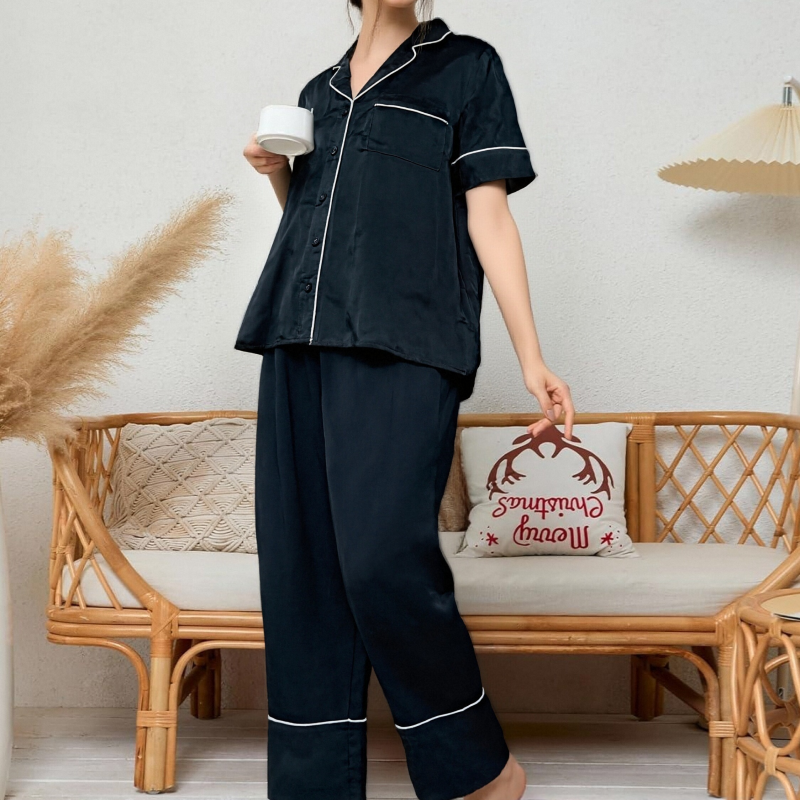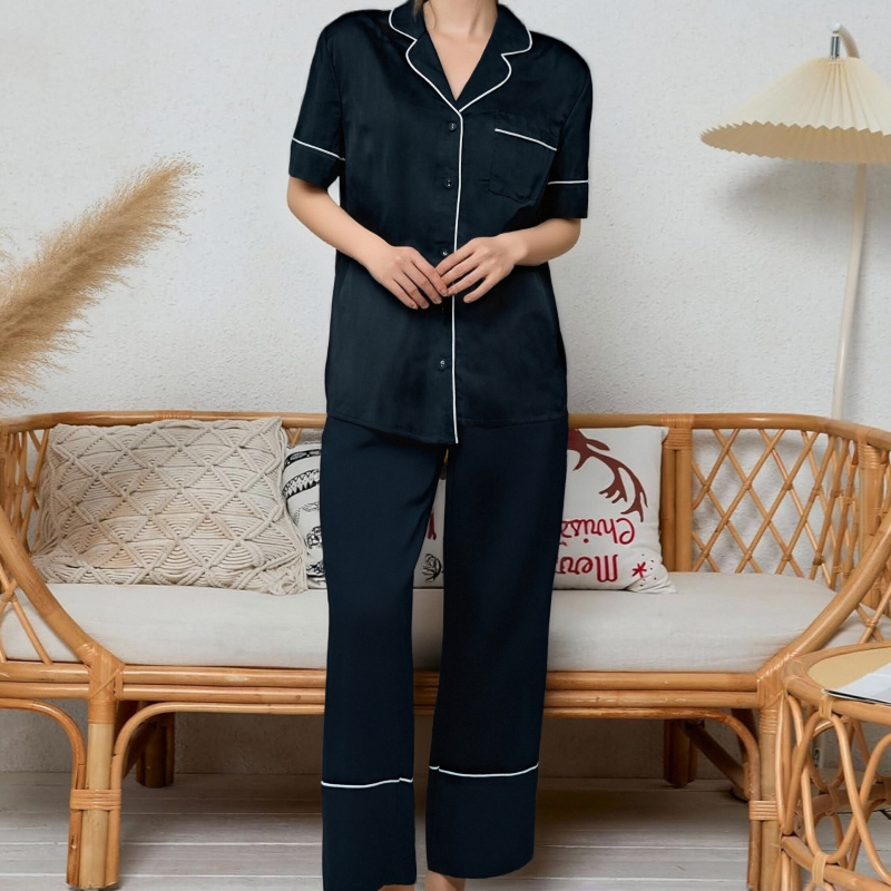 Satin weave offers a silky smooth texture with an exceptional delicate touch. Fabric drapes smoothly, resists wrinkling, and is easy to care for. Long sleeves and buttoned design provide a classic, full-coverage sleepwear experience.