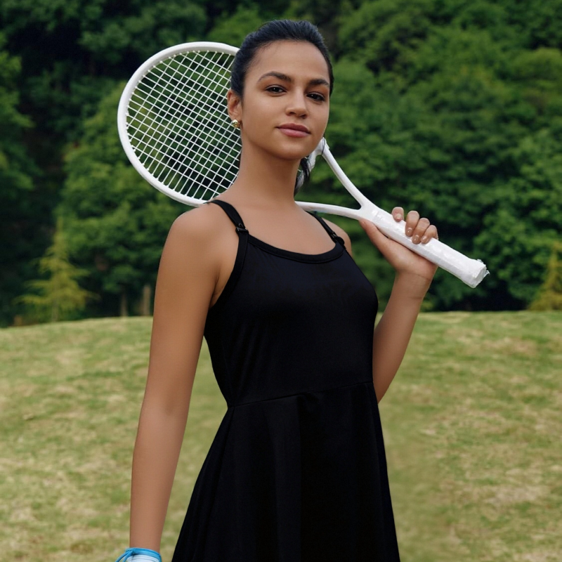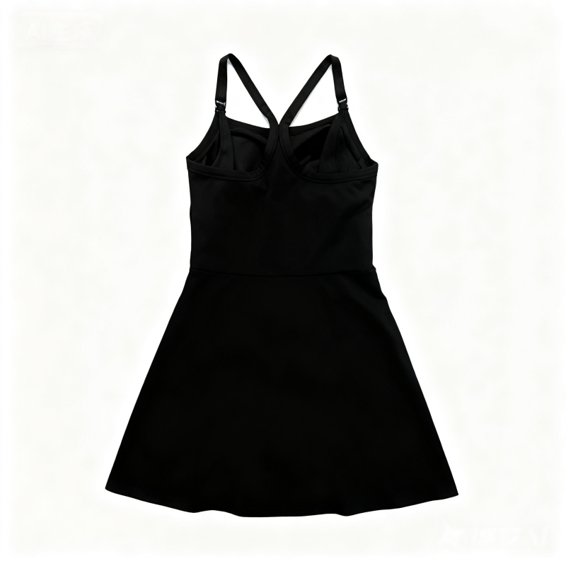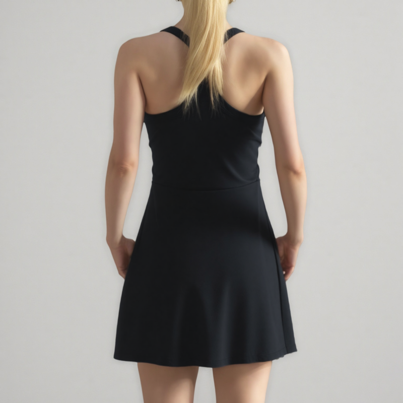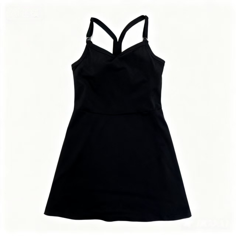 Weft-Knitted Black Sports Camisole Dress